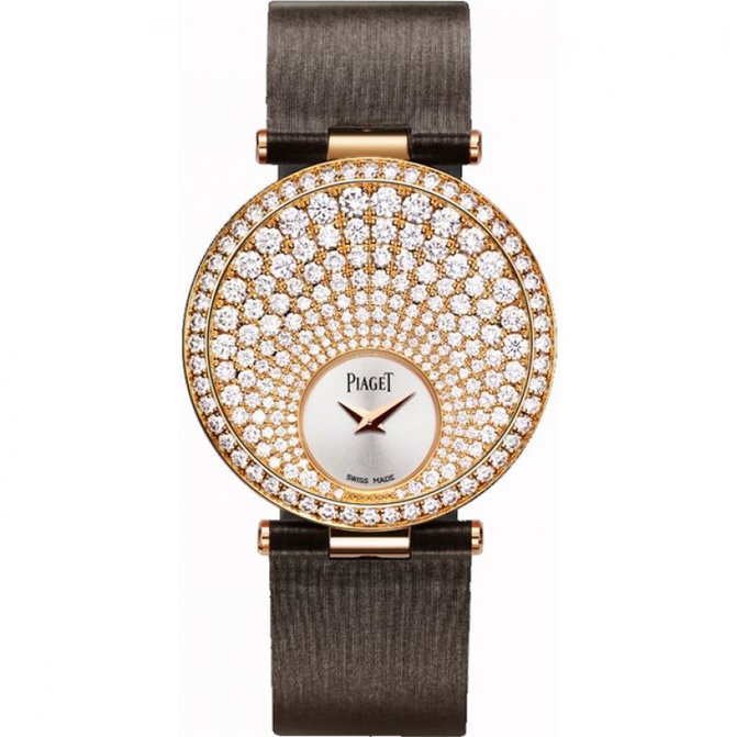 Новая революция в часовом искусстве, абсолютно в духе Piaget. Плод неукротимой фантазии художников, двусторонняя модель Limelight Twice самым оригинальным образом переворачивается для указания времени в двух различных часовых поясах. Двуликое изделие с одним видимым и одним скрытым от глаз циферблатом отличается женственной смелостью стиля. Чистоту линий не нарушает даже заводная головка: ее заменяют потайные кнопки, сливающиеся с корпусом. Двусторонний ремешок и переворачивающаяся застежка гармонично сочетаются с дизайном корпуса и подходят для самого изящного дамского запястья. Водонепроницаемость данной модели до 3 бар(30 метров). Имеют сапфировое стекло. Браслет выполнен из атласа. Застежка интегрированная. Корпус из розового золота 18 карат с 278 бриллиантами круглой огранки (около 5.3 карата). Застежка с 54 бриллиантами круглой огранки (около 0.2 карата). Двусторонний ремешок. Два кварцевых механизма Piaget 56P.