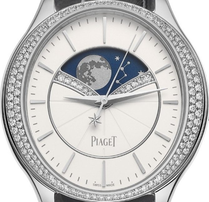 Эффектная линейка Limelight от Piaget стала еще шире - ее пополнила модель женских швейцарских часов Stella G0A40111 Grey. Корпус часов, выполненный в диаметре 36 мм из белого золота, хранит внутри себя качественный швейцарский автоматический калибр 584P, обеспечивающий индикацию часов, минут, секунд и фаз Луны. Женские швейцарские астрономические часы укомплектованы нежным серым ремешком из кожи аллигатора и бело-золотой пряжкой. Циферблат украшают белые бриллианты и индикатор лунных фаз. Также бриллиантами украшен и безель. Лаконичная отделка камня позволяет увидеть его уникальную текстуру. Стрелки и часовые метки сделаны из белого золота. Корпус часов с 30-метровой водостойкостью. Толщина корпуса всего 6 мм. Представленная часовая модель удачно сочетает в себе блеск белого золота и драгоценных камней.