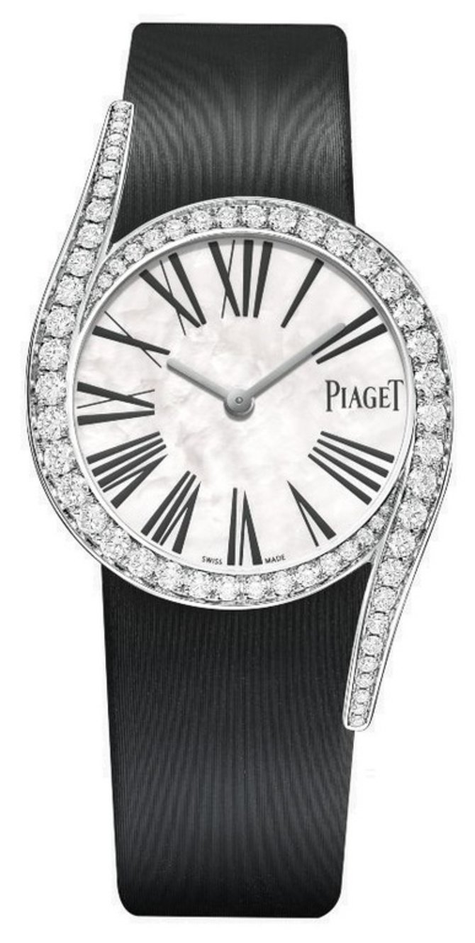 Швейцарская часовая торговая марка Рiaget представляет элегантную ювелирную модель наручных часов Limelight Gala, которая представлена в круглом полированном корпусе из белого 18-каратного золота. Корпус декорирован белыми бриллиантами классической огранки. На перламутровом циферблате сквозь стекло из сапфира показываются данные текущего времени. В комплекте идет черный ремешок из сатина с классической золотой застежкой. Механизм (калибр Piaget 430P) с ручным подзаводом. Корпус имеет водонепроницаемость до 30 метров. Задняя крышка из сапфирового стекла открывает вид на работу механического калибра.
