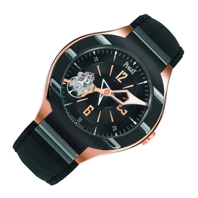 Создание этой модели, вписавшей новую страницу в историю турбийона, потребовало от специалистов Piaget необычайной дерзости и наивысшего мастерства. Прикрепленная к кончику минутной стрелки каретка турбийона без какой-либо видимой связи с механизмом, приводящим ее в движение, в завораживающем танце кружит по периметру циферблата. Волшебная иллюзия, созданная на основе выдающегося технического достижения, получает импульс от механизма, размещенного в корпусе из розового золота. Ободок с черным PVD-покрытием привносит оттенок авангардизма в образ этого исключительного турбийона, призванного стать жемчужиной часовых коллекций. Водонепроницаемость данной модели до 3 бар(30 метров). Имеют сапфировое стекло. Браслет выполнен из кожи аллигатора. Застежка раскладывающаяся. Корпус из розового золота 18 карат с черным PVD-покрытием. Циферблат с часовыми индексами из розового золота 18 карат. Мануфактурный механизм с релятивным турбийоном Piaget 608P с ручным заводом. Ограниченная и пронумерованная серия из 20 экземпляров.