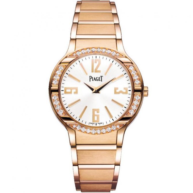 Благодаря своему узнаваемому стилю – идеально интегрированный в корпус браслет, поперечные рельефные полоски, мягкая игра света на полированных и матовых поверхностях – эмблематические часы Piaget Polo не перестают очаровывать. Маленькая женская модель воплощает собой первоначальный шарм этих часов с отпечатком популярности среди знаменитостей. Как нельзя более актуальный сегодня винтажный облик несколько сглаживается современным звучанием часов. Новые модели с золотым браслетом отличаются несколько большим диаметром, составляющим 32 мм, и тщательно продуманными изгибами, обеспечивающими максимальный комфорт при ношении. Гибкость позволяет им приспособиться к каждому запястью, практически сливаясь с ним. Непринужденный характер часов свидетельствует об истинной элегантности. Модель, оснащенная кварцевым механизмом, представлена в версии из розового золота с бриллиантами на ободке. Водонепроницаемость данной модели до 3 бар(30 метров). Имеют сапфировое стекло. Корпус из розового золота 18 карат с 36 бриллиантами круглой огранки (около 0.5 карата). Циферблат с часовыми индексами из розового золота 18 карат. Браслет из розового золота 18 карат. Кварцевый механизм Piaget 690P. Застежка раскладывающаяся. Циферблат с часовыми индексами из розового золота 18 карат. Браслет из розового золота 18 карат. Кварцевый механизм Piaget 690P.