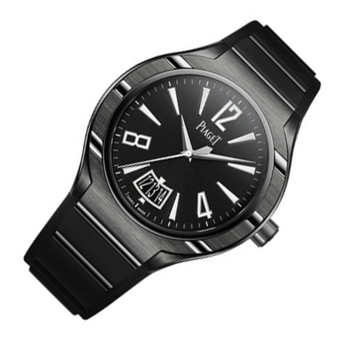 Часы Piaget Polo FortyFive олицетворяют собой принцип, согласно которому память о прошлом служит материалом для создания будущего. Эта решительная спортивная модель представляет собой новое поколение знаменитых часов Piaget Polo и отличается диаметром корпуса – 45 мм – символизирующим длительность матча поло, составляющую 45 минут. Тщательно продуманные изгибы обеспечивают максимальный комфорт при ношении, а уникальное для Piaget сочетание материалов сопровождается высочайшим качеством отделки. Эта модель из титана с алмазоподобным углеродным покрытием DLC отличается внушительным матовым корпусом черного цвета, при этом изысканно сочетает чередование матовых и полированных поверхностей. Облик часов прекрасно дополняет ремешок из вулканизированного каучука с рельефными полосками из стали с черным покрытием DLC и застежкой с двойной функцией лето/зима. Эти часы с водонепроницаемостью до 100 метров оснащены мануфактурным механизмом с автоматическим подзаводом 800P. Корпус из титана с покрытием DLC с рельефными полосками из стали с покрытием DLC. Циферблат с люминесцентными часовыми индексами. Задняя крышка из сапфирового стекла. Мануфактурный механизм Piaget 800P с PVD-покрытием и автоматическим подзаводом. Секундная стрелка, указатель даты. Их функции четко отображаются на черном циферблате с большим указателем даты. Водонепроницаемость данной модели до 10 бар(100 метров). Имеют сапфировое стекло. Браслет выполнен каучука. Застежка раскладывающаяся.