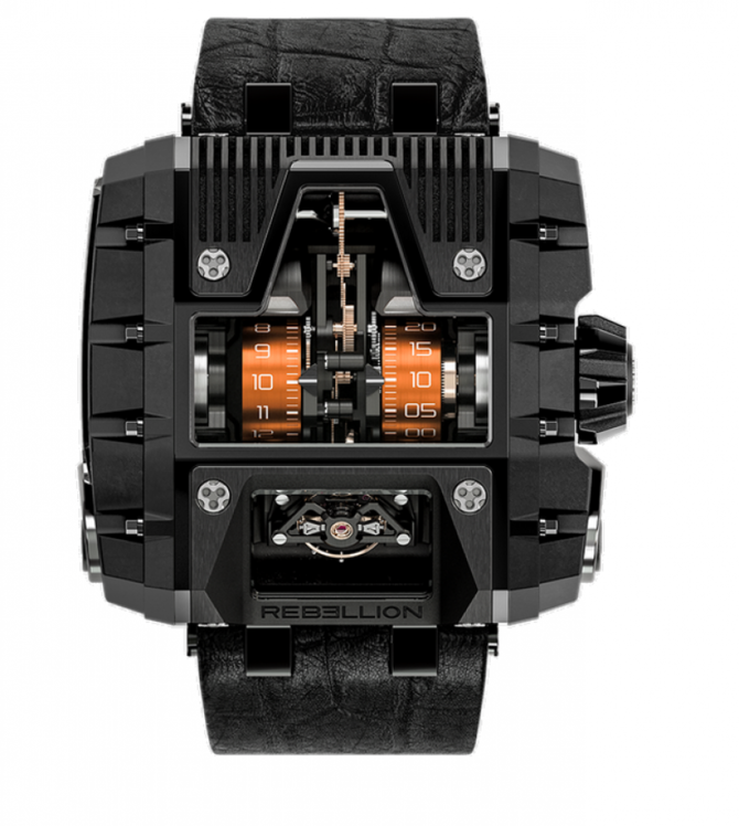 Компания Rebellion представила по-истине революционный механизм, уже вошедший в историю мировой часовой индустрии! Концентрат механики и инноваций мощности и производительности на Вашем запястье. Основной особенностью этой часовой линии является механизм моделей с запасом хода, внимание, 1000 часов! Это мировой рекорд уровня запаса энергии. Модели коллекции выпущены ограниченной серией - 25 экземпляров каждая. Все стекло, присутствующее на корпусе - сапфировое. Механизм T2K с великолепной отделкой является мануфактурным. На его разработку, а также корректировку, ушло три года исследований мастеров компании. T2K - образец инноваций и производительности Дизайн часов полностью разрушает все стереотипы, сложившиеся о наручных часах. Размер калибра, состоящего из 693 деталей и изготовленного из алюминиевого сплава авионал, составляет 38 х 41.3 х 13.6 мм. Укомплектованы часы ремешком из натуральной кожи страуса. Коллекция наручных часов Gotham беспрепятственно демонстрирует свою грозную силу.