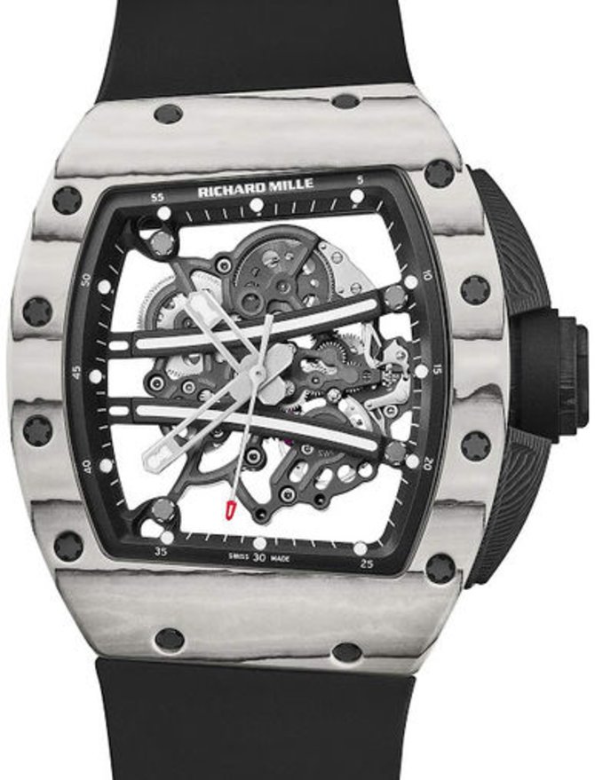 Мужская модель швейцарских часов RICHARD MILLE RM 61-01 ULTIMATE EDITION Mens collectoin RM 050-068 Yohan Blake представлена в корпусе из карбона, диаметром 50.23 x 42.70 мм. Герметичность корпуса составляет 50 метров. Часы приводит в действие механический калибр RMUL2 с запасом хода на 55 часов. На скелетонированном циферблате показываются данные часов, минут и секунд. Каучуковый ремешок черного цвета оснащен карбоновой пряжкой. С целью защиты циферблата от повреждений установлено стекло из сапфирового кристалла. Ограниченный тираж модели - 150 экземпляров.