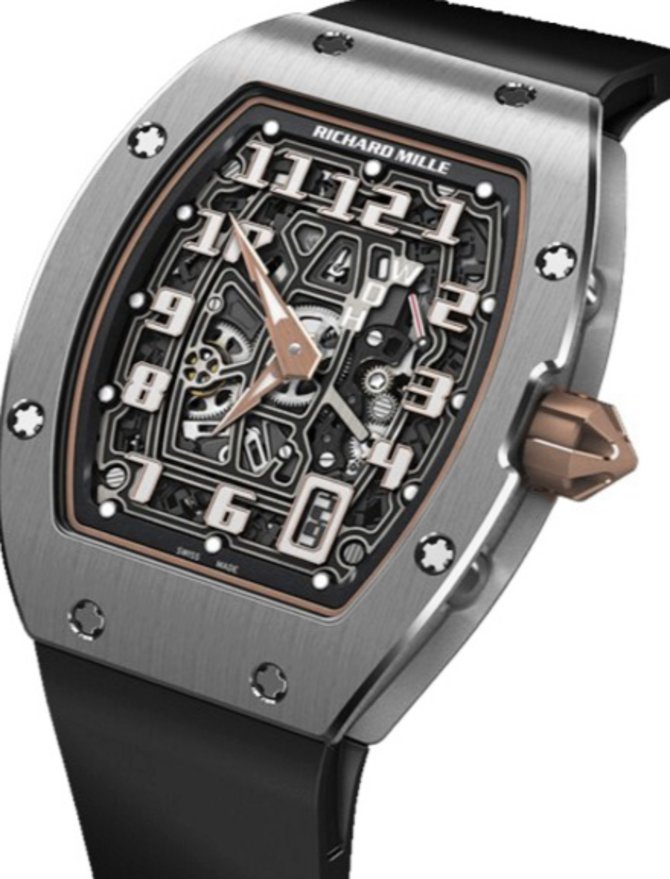 Часовая мануфактура Richard Mille недавно представила модель RM 67-01 Automatic Extra Flat в традиционном и характерном для Richard Mille бочкообразном корпусе из белого золота, размером 38,70 мм x 47,52 мм (диаметр) х 7,75 мм (толщина). Стеклом из прочного сапфирового кристалла защищен корпус и с лицевой, и с задней стороны корпуса. Сквозь прозрачную заднюю крышку видна работа мануфактурного механического калибра с автоматическим подзаводом. К слову, ротор автоподзавода сделан из чистого белого золота. Запас хода механизма составляет 50 часов. На циферблате-скелетоне выполняется индикацию часов, минут и даты. Ремень сделан из каучука черного цвета. Стрелки и цифры на циферблате сделаны из золота и покрыты люминесцентным составом, что светится в темноте.