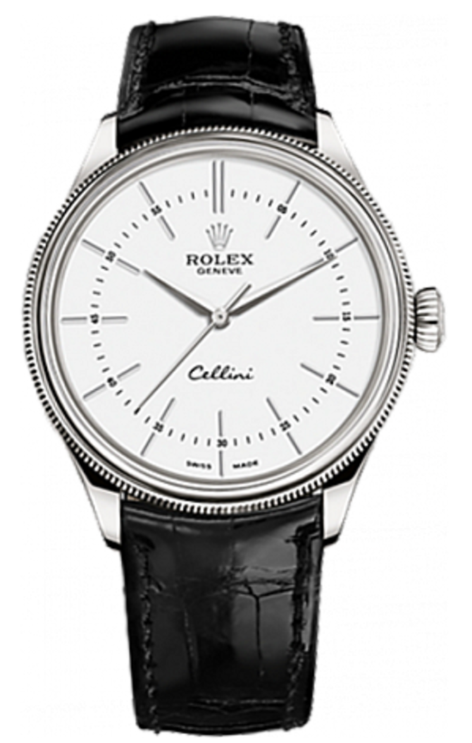 В 2018 году Rolex представили классическую модель швейцарских часов крупной серии Cellini.С помощью часов Rolex Cellini Time 50509-0016 можно следить за данными текущего времени на белом циферблате с метками и стрелками из белого золота. Часы оснащены мануфактурным механическим механизмом 3132, созданным Rolex. Механизм функционирует от автоматического подзавода. Без подзавода часы способны функционировать до 48 часов. Механизм был отмечен сертификатом COSC как сверхточный хронометр. Корпус произведен из белого золота, диаметром 39 миллиметров. Противобликовое стекло изготовлено из натурального сапфирового кристалла. Водонепроницаемость до 50 метров.
