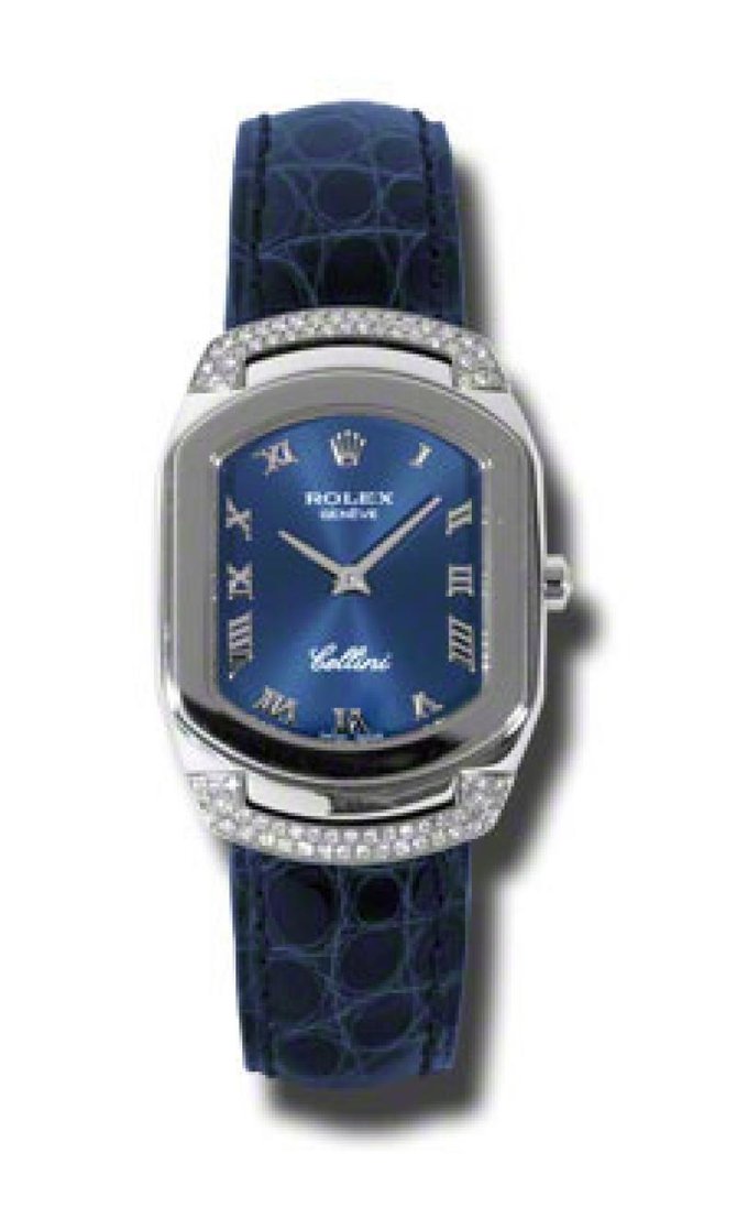 Часы женские 6692.9, корпусиз белого золота 18 к., инкрустирован 78 белыми бриллиантами, циферблат темно-синий с римскими цифрами. Стекло - сапфир. Рмешок из кожи аллигатора темно-синий со вставкой белого золота 18к., застежка раскладная. Механизм кварцевый. Функции: часы, минуты, секунды. Дополнительно водонепроницаемость до 30 м.