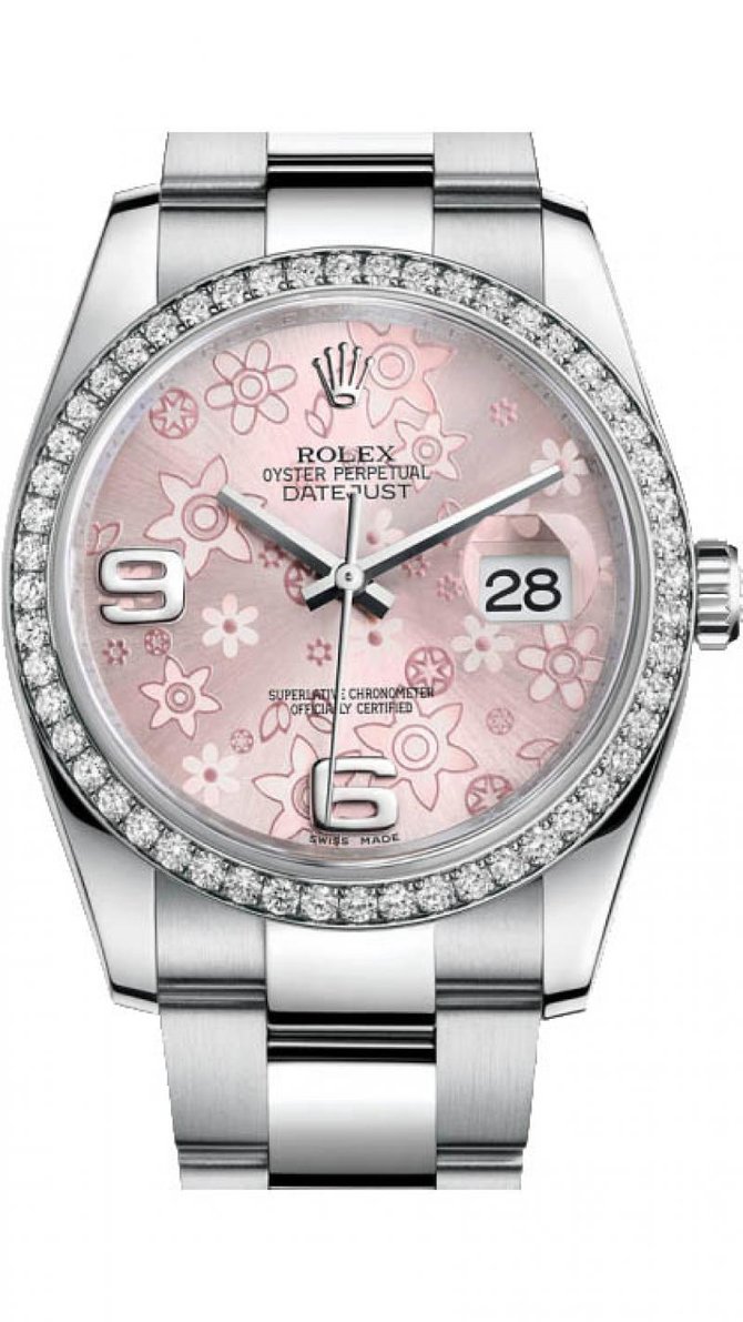 Похоже, что даже самая консервативная швейцарская часовая компания не может не следовать современным тенденциям. Подтверждение тому новые модели часов для женщин. Во-первых, в соответствии с современной модой, эти часы представлены в рамках «мужской» линейки Datejust с диаметром корпуса 36 мм. И второе, самое главное, сохраняя все черты коллекции, новые модели имеют веселый, разрисованный циферблат! Что для компании является огромным шагом вперед, впрочем, золото и бриллианты в оформлении новинок никто не отменял. А так же, есть и традиционные варианты с перламутровым циферблатом и бриллиантовыми индексами. Корпус диаметром 36 мм из нержавеющей стали 904L, применяемой в химической промышленности с безелем из желтого или белого золота с 52 инкрустированными бриллиантами. Сапфировое стекло с лупой над апертурой даты и традиционная водостойкость в 100 метров. В зависимости от модели браслет Jubilee с застежкой короной или обычный Oyster с удлиняющейся Easylink. Механизм, по-прежнему с 1988 года, калибр 3135, с запасом хода 48 часов, 31 камнем, сертифицированный хронометр COSC.