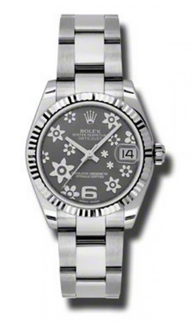 Эти женские современные часы диаметром 31 мм сочетают в своем облике великолепные сияющие оттенки благородных материалов. Они представляют собой воплощенный гимн страсти и обольщения, обладая при этом всеми качествами классической модели серии Datejust, знаковой модели Rolex, характеризующейся элегантностью, не зависящей от времени. Бесспорная элегантность Datejust Lady 31 задается корпусом диаметром 31 мм с различными безелями: выпуклым, рифленым, украшенным драгоценными камнями или бриллиантами. Часы Datejust Lady 31 изготавливаются из разных материалов: из стали 904L, 18-каратного желтого, белого золота или золота Everose, из платины 950-й пробы. Они могут похвастаться огромным выбором восхитительных циферблатов самых разных цветов и типов декоративного оформления, каждый из которых по-своему уникален. Часто циферблаты модели сверкают перламутром или прелестными цветочными узорами розового цвета, цвета родиума, а также цвета шампанского. Циферблаты украшаются нежными оттенками и сверкают тысячами огней. Как например в данной модели 178274 rfo циферблат украшен цветочным мотивом. Цветочный узор наносится на циферблат – цвета темного родиума, цвета шампанского или розовый – методом гальванопластики, который позволяет получить тщательно прорисованный мотив. Браслет Oyster – это совершенное сочетание формы и функциональности, эстетики и технологических достижений. Созданный в конце 1930-х годов, этот прочный и удобный металлический браслет с трехрядными широкими и плоскими звеньями до сих пор является самым распространенным в коллекции часов Oyster. Он сочетается со всеми типами застежек Rolex, в зависимости от модели.