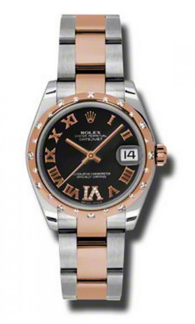Часы DateJust были созданы в 1945 году и стали первыми наручными часами – водонепроницаемым автоматическим хронометром с индикатором даты в положении «3 часа» в окошке на циферблате, что объясняет их название. В самых ранних моделях дата начинала меняться за несколько часов до полуночи. В 1955 году механизм смены даты модифицировали под мгновенное переключение, а для более удобного считывания показаний в окошко индикации даты была помещена линза с увеличением в 2,5 раза. Как и в оригинальной версии Datejust, на модели Datejust Lady 31 дата показана в окошке на циферблате в положении «3 часа». Она изменяется почти мгновенно, ровно в полночь, в течение тысячных долей секунды. Знаменитая циклопная линза, добавленная к обычному стеклу, – изобретение компании Rolex 1953 года – позволяет в 2,5 раза увеличить размер даты для более удобного считывания показаний. Бесспорная элегантность Datejust Lady 31 задается корпусом диаметром 31 мм с различными безелями: выпуклым, рифленым, украшенным драгоценными камнями или бриллиантами. Часы Datejust Lady 31 изготавливаются из разных материалов: из стали 904L, 18-каратного желтого, белого золота или золота Everose, из платины 950-й пробы. Они могут похвастаться огромным выбором восхитительных циферблатов самых разных цветов и типов декоративного оформления, каждый из которых по-своему уникален. Часто циферблаты модели сверкают перламутром или прелестными цветочными узорами розового цвета, цвета родиума, а также цвета шампанского. Циферблаты украшаются нежными оттенками и сверкают тысячами огней. Циферблат и безель данной модели украшены белыми бриллиантами.