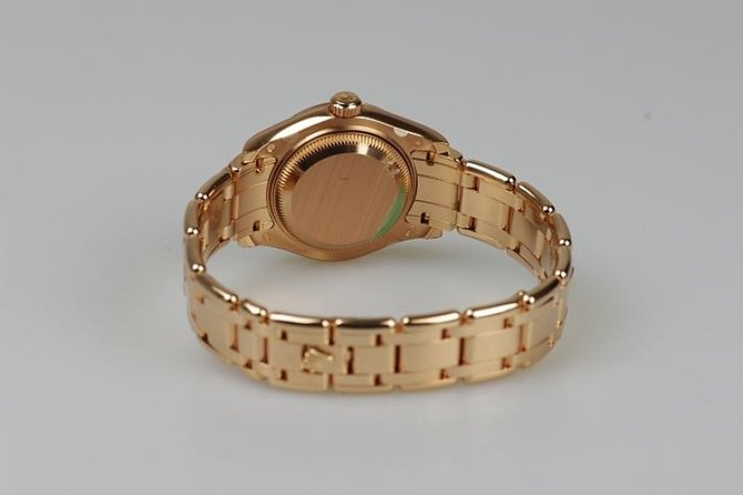 В 1945 году на свет появились часы Datejust – первый автоматический наручный хронометр с индикацией даты в окошке на циферблате. Новинка отличалась яркой индивидуальностью: специально разработанный для нее браслет Jubilee и рифленый безель позволяли безошибочно узнавать в модели Datejust часы Rolex. Сегодня это стержень коллекции Oyster. Предназначавшиеся изначально мужчинам, в течение следующего десятилетия они стали доступны в разных моделях для женщин. В 1947 году компания Rolex выпустила стотысячный сертифицированный хронометр. Ганс Вильсдорф подарил этот экземпляр часов Datejust одному знаменитому человеку, который, по словам Вильсдорфа, принадлежал к величайшим фигурам современности. Кто был этим человеком, до сих пор остается загадкой. Rolex Watches - Datejust Lady - Gold President Yellow Gold - Dia Bezel - модель 179158 bkdp Rolex Oyster Perpetual Lady-Datejust Watch 26мм 18-каратного желтого золота, корпус инкрустирован белыми бриллиантами по выступам, заданный с 24 бриллиантами. Безель инкрустирован 42 бриллиантами, черный циферблат, 10 белых бриллиантов вместо цифр и президент браслет. Особенности модели 179158 bkdp: Водостойкие часы – это особые часы, имеющие свойство корпуса не пропускать влагу внутрь механизма. Первые такие часы были выпущены в 1926 году компанией Rolex. С тех пор они были значительно улучшены по техническим характеристикам. И большинство известных всему миру брендов занимаются производством водостойких хронометров. Степень водостойкости измеряется в метрах или атмосферах. При этом погружение на 10 метров соответствует увеличению давления на одну атмосферу. И соответственно – чем выше водонепроницаемость часов, тем большее количество метров указывается в характеристике (описании) часов. Хронометр - высокоточные механические часы, имеющие сертификат швейцарской Службы официального контроля за хронометрами (COSC). Тестирование хронометров в Швейцарии изначально происходило в обсерваториях в Невшателе (Neuchatel, 1866 - 1975) и в Женеве (Geneve, 1873 - 1967). Каждая обсерватория придер