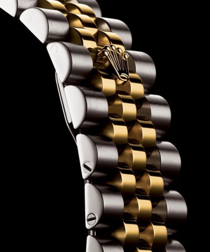 Браслет Jubilee. Гибкий и удобный браслет Jubilee с пятирядными звеньями был разработан специально к выходу часов Oyster Perpetual Datejust в 1945 году. Браслет Jubilee сочетается со скрытой застежкой Crownclasp.