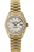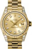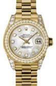 Lady-Datejust 26mm Yellow Gold 179238 wdp. Циферблат белый, 10 белых бриллиантов. Браслет из желтого золота 18к. Дополнительная информация: водонепроницаемость 100 м, корпус инкрустирован белыми бриллиантами.
