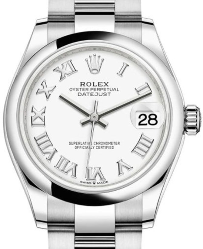 Женские швейцарские наручные часы Datejust 31 Oyster Perpetual 31 mm Ref. 278240-0003 часовая мануфактура выпустила в 2020 году. Инженеры марки Rolex в круглый корпус из нержавеющей стали установили собственную мануфактурную разработку - калибр 2236 с автоматическим подзаводом и запасом хода на 55 часов работы. Также стоит отметить наличие сертификата хронометрической точности хода от COSC. Диаметр корпуса - 31 мм. Циферблат белого цвета служит для индикации текущего времени. Часовая разметка на циферблате - римская. Над индикатором даты установлена специальная циклопная линза для увеличения показаний. Браслет из нержавеющей стали оснащен раскладной пряжкой. Корпус отличается высокой герметичностью - 100 метров.
