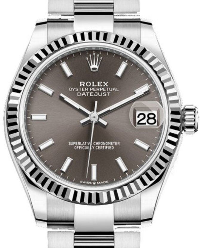 Швейцарские часы механического типа Datejust 31 Oyster Perpetual 31 mm Ref. 278274-0015, разработанные компанией Rolex в 2020 году специально для женщин, выпущены в круглом комбинированном корпусе из белого 18-каратного золота и нержавеющей стали, диаметром 31 мм. Часы функционируют на базе собственной мануфактурной разработки инженеров Rolex - мануфактурном механическом калибре с автоматическим подзаводом и запасом хода на 55 часов работы 2236, высокую точность хода которого подтверждает сертификат хронометра COSC. На циферблате установлены стрелки и часовые метки с люминесцентным покрытием, которое светится при плохом освещении. Индикатор даты накрыт циклопной линзой для увеличения показаний. Браслет из стали оснащен раскладной пряжкой. Корпус отличается высокой герметичностью - 100 метров.