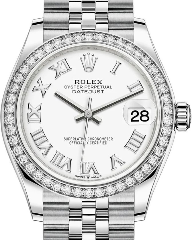 Известная на весь мир швейцарская часовая марка Rolex представляет модель женских механических часов класса "люкс" - Datejust 31 Jubilee Perpetual 31 mm Ref. 278384RBR-0014. Корпус новинки выполнен в круглой форме в комбинации двух металлов - белого 18-каратного золота и нержавеющей стали. Диаметр корпуса - 31 мм. Для защиты циферблата от повреждений специалисты Rolex установили лицевое стекло из натурального сапфирового кристалла с противобликовым составом сверху. Безель корпуса украшает множество белых бриллиантов классической огранки. Часовая разметка представлена в виде римских цифр. Над индикатором даты установлена запатентованная разработка инженеров Rolex - циклопная линза, служащая для увеличения показаний. Стальной браслет оснащен раскладной застежкой. Установленный внутри корпуса мануфактурный механический калибр 2236 отличается функцией автоматического подзавода и запасом хода на 55 часов работы, а точность его хода подтверждена сертификатом COSC. Корпус отличается герметичностью до 100 метров (10 бар). Год выпуска час ов - 2020.