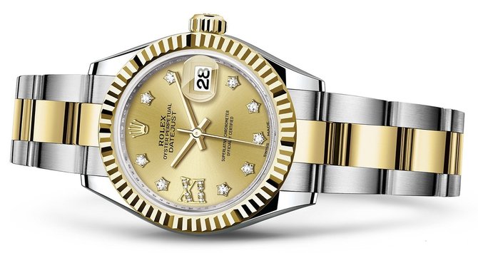Rolex Lady-Datejust - это элегантные миниатюрные швейцарские часы, достойные украшать женское запястье. Уникальность часов модели Lady-Datejust в сверхточном механизме с функцией автоматического подзавода и запасом хода в 55 часов. Калибр 2236 - это одна из последних технических разработок Rolex. Он имеет сертификат швейцарской Службы официального контроля за хронометрами (COSC). Корпус часов Rolex Lady-Datejust изготовлен из нержавеющей стали и 18-каратного желтого золота, что позволяет часам сохранить работоспособность и первоначальную красоту даже в экстремальных условиях эксплуатации. Красота часов из желтого золота не меркнет со временем. Это особенный золотой сплав, изготавливаемый в собственном литейном цехе Rolex, о чем свидетельствует наличие официального патента компании. Корпус данной модели часов гарантирует водонепроницаемость до 100 м и представляет собой эталон прочности и элегантности. Золотистый циферблат украшают 10 сияющих белых бриллиантов в золотой оправе. Окошко даты оборудовано циклопной линзой с увеличением, что обеспечивает наилучшую читаемость показаний. Браслет из нержавеющей стали и 18-каратного желтого золота сочетает в себе элегантность, практичность и надежность. Часы комплектуются гибким и удобным браслетом из нержавеющей стали и 18-каратного желтого золота со скрытой застежкой и с раскладывающейся пряжкой. Браслет состоит из трехрядных звеньев и оснащен незаметным креплением под безелем, что создает впечатление единства браслета и корпуса.