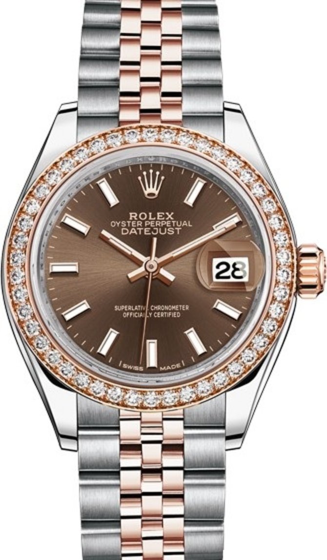 Швейцарские часы Rolex Lady-Datejust - это совершенство, престиж и надежность. Материалы, собственная разработка Rolex и производство каждой детали отвечают высочайшим стандартам качества. Корпус часов изготовлен из нержавеющей стали и 18-каратного розового золота, что позволяет часам сохранить работоспособность и первоначальную красоту даже в экстремальных условиях эксплуатации. Модель Lady-Datejust оснащена автоматическим калибром 2236 с индикацией времени. Механизм 2236, полностью изготовленный мастерами Rolex, успешно прошел тестирование в Официальном швейцарском институте хронометрии и имеет сертификат швейцарского хронометра, выдаваемый сверхточным часам. Циферблат выполнен в коричневом цвете. Отметки на циферблате, часовая и секундная стрелки изготовлены из розового золота. Безель украшен сияющими белыми бриллиантами. Циферблат защищен сапфировым стеклом. Часы Rolex Lady-Datejust водостойкие. Водонепроницаемость до 100 м. Браслет из нержавеющей стали и 18-каратного розового золота сочетает в себе элегантность, практичность и надежность.