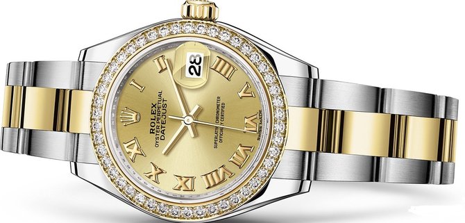 Образцом универсального классического стиля является модель швейцарских часов Rolex Lady-Datejust. В ней сохранены функции часов, минут, секунд и индикатор даты. Эти основные эстетические принципы обеспечивают узнаваемость и признание швейцарских часов Rolex. Корпус модели выполнен из нержавеющей стали и 18-каратного желтого золота. На золотистом циферблате расположены золотые часовые отметки и центральные стрелки. Дата показана в окошке на циферблате в положении "3 часа". В полночь дата мгновенно меняется. Для удобного считывания информации к обычному стеклу добавлена циклопная линза, увеличивающая размер показаний даты. Золотой безель инкрустирован сияющими бриллиантами. Модель оснащена механизмом нового поколения с автоподзаводом и запасом хода 55 часов. Калибр 2236 производства Rolex успешно прошел тестирование в Официальном швейцарском институте хронометрии (COSC). Корпус обеспечивает полную защиту механизму и гарантирует водонепроницаемость до 100 м. Часы комплектуются браслетом, изготовленным из нержавеющей стали и 18-каратного желтого золота.