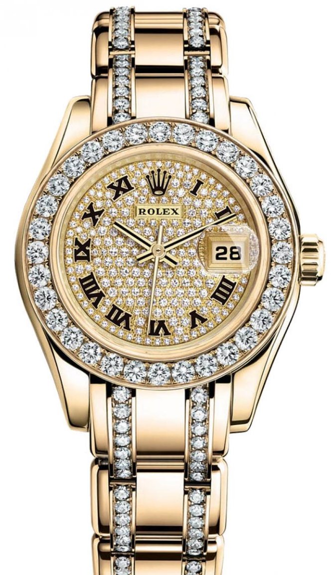 Округлые, гармоничные линии как высший символ женственности. Модель Pearlmaster, выпущенная в 1992 году, с самого начала отличалась утонченным обликом, округлостью и элегатностью. Украшенные бриллиантами, рубинами, сапфирами или изумрудами, эти часы представляют собой новую женскую интерпретацию легендарной модели Datejust. Часы Pearlmaster выпускаются исключительно в корпусе из 18‑каратного желтого, белого золота или золота Everose и украшаются бриллиантами или другими драгоценными камнями. Изящный корпус диаметром 29 мм чуть больше, чем у классической модели Lady-Datejust, диаметр которой 26 мм. Корпус поражает благородством и утонченностью форм. Его увеличенный безель сверкает драгоценными камнями солидных размеров, которые вставлены в оправу и имеют багетную или классическую огранку.