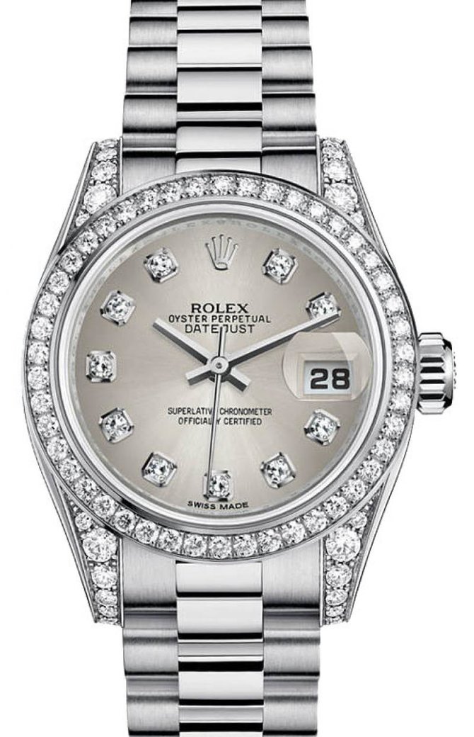 В небольшом корпусе модели Lady-Datejust диаметром 26 мм заключены все качества знаковой модели Rolex Datejust. Неподвластная времени элегантность этого сокровища на каждый день подчеркивается волнующими и соблазнительными расцветками циферблатов, благородством материалов и сверканием бриллиантов.