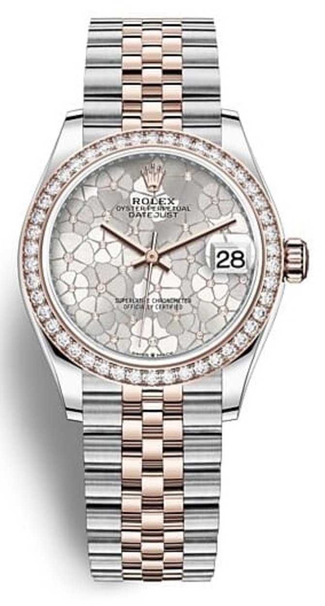 Знаменитая швейцарская часовая мануфактура Rolex представляет наручные часы DATEJUST 31 m278381rbr-0032 в 31-миллиметровом корпусе, что выполнен в комбинации нержавеющей стали и розового золота. Безель инкрустирован белыми бриллиантами классической огранки. Установленный часовой калибр 2236 от Rolex с автоматическим подзаводом и запасом хода на 55 часов. На циферблате сквозь сапфировое стекло показываются данные часов, минут, секунд, даты. Циферблат украшен гильошированием, выполненным вручную, а также бриллиантами. Индикатор даты накрыт циклопной линзой для увеличения показаний. В комплекте поставляется комбинированный браслет из стали и золота, а также застежка раскладного типа.