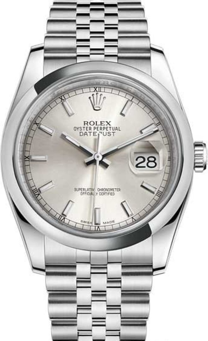 Мануфактурная модель от Rolex - Datejust Datejust 36 mm Steel 116200-0084 в стальном 36-миллиметровом корпусе, выполненном из особой стали - Oystersteel, что отличается высокой устойчивостью к коррозии. Полировка корпуса произведена вручную специалистами Rolex. Сатинированный циферблат с накладными деталями, покрытыми люминесцентным составом, служит для отображения часов, минут, секунд и даты. Высокопрочное защитное стекло сделано из сапфирового кристалла, покрытого антибликовыми свойствами. Окошко, где показывается дата, накрыто циклопной линзой. Модель оснащена высокоточным калибром с автоматическим подзаводом, запасом хода на 48 часов, а также отмечен сертификатом хронометра COSC.