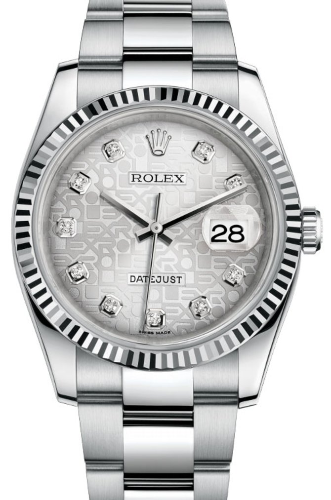 Система Twinlock обеспечивает отличную водонепроницаемость привинчиваемой заводной головки благодаря двум герметичным прокладкам, одна из которых находится во втулке корпуса, а вторая – внутри заводной головки. Этот принцип используется во всех часах коллекции Oyster, водонепроницаемых до глубины 100 метров. Корпус Oyster является одной из главных составляющих репутации Rolex, став для многих стандартом совершенства в часовом искусстве. Изобретенный компанией Rolex в 1926 году, он стал первым водонепроницаемым корпусом для наручных часов благодаря запатентованной системе привинчиваемых деталей – безеля, задней крышки и заводной головки. Прочный корпус Rolex Oyster представляет собой плотно закрытую конструкцию наподобие моллюска, что обеспечивает герметичность и защищает высокоточный механизм Perpetual от воды, пыли и давления. Благодаря такой структуре, все часы Rolex Oyster водонепроницаемы до глубины 100 метров, а часы для дайвинга – до 300 и 3 900 метров. Браслет Oyster – это совершенное сочетание формы и функциональности, эстетики и технологических достижений. Созданный в конце 1930-х годов, этот прочный и удобный металлический браслет с трехрядными широкими и плоскими звеньями до сих пор является самым распространенным в коллекции часов Oyster. Часы DateJust были созданы в 1945 году и стали первыми наручными часами – водонепроницаемым автоматическим хронометром с индикатором даты в положении «3 часа» в окошке на циферблате, что объясняет их название. В самых ранних моделях дата начинала меняться за несколько часов до полуночи. В 1955 году механизм смены даты модифицировали под мгновенное переключение, а для более удобного считывания показаний в окошко индикации даты была помещена линза с увеличением в 2,5 раза.