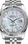 Система Twinlock обеспечивает отличную водонепроницаемость привинчиваемой заводной головки благодаря двум герметичным прокладкам, одна из которых находится во втулке корпуса, а вторая – внутри заводной головки. Этот принцип используется во всех часах коллекции Oyster, водонепроницаемых до глубины 100 метров. Корпус Oyster является одной из главных составляющих репутации Rolex, став для многих стандартом совершенства в часовом искусстве. Изобретенный компанией Rolex в 1926 году, он стал первым водонепроницаемым корпусом для наручных часов благодаря запатентованной системе привинчиваемых деталей – безеля, задней крышки и заводной головки. Прочный корпус Rolex Oyster представляет собой плотно закрытую конструкцию наподобие моллюска, что обеспечивает герметичность и защищает высокоточный механизм Perpetual от воды, пыли и давления. Благодаря такой структуре, все часы Rolex Oyster водонепроницаемы до глубины 100 метров, а часы для дайвинга – до 300 и 3 900 метров. Часы DateJust были созданы в 1945 году и стали первыми наручными часами – водонепроницаемым автоматическим хронометром с индикатором даты в положении «3 часа» в окошке на циферблате, что объясняет их название. В самых ранних моделях дата начинала меняться за несколько часов до полуночи. В 1955 году механизм смены даты модифицировали под мгновенное переключение, а для более удобного считывания показаний в окошко индикации даты была помещена линза с увеличением в 2,5 раза. Браслет Oyster – это совершенное сочетание формы и функциональности, эстетики и технологических достижений. Созданный в конце 1930-х годов, этот прочный и удобный металлический браслет с трехрядными широкими и плоскими звеньями до сих пор является самым распространенным в коллекции часов Oyster. Модель Datejust – это современный эталон классических наручных часов как в плане непреходящего дизайна, так и в плане функциональности. Часы Datejust пронесли сквозь время незыблемые эстетические принципы, обеспечившие им признание и узнаваемость, ос