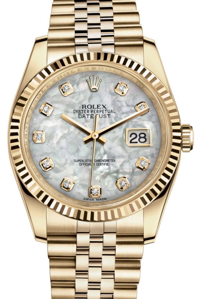 Женские часы 36mm Yellow Gold (116238-White MOP Diamonds)