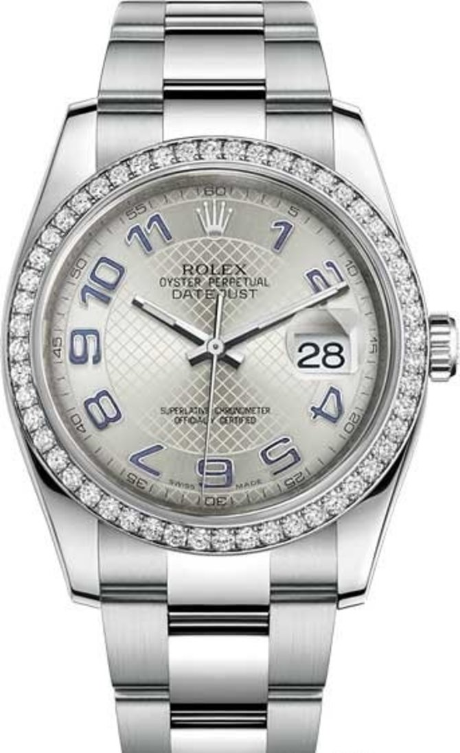 Безель из натуральных белых бриллиантов - первое, что бросается в глаза на часах Rolex Datejust Datejust 36mm Steel and White Gold 116244-0075. Корпус и браслет изготовлены из белого 18-каратного золота и нержавеющей стали. Стрелки с люминесцентным покрытием показывают текущее время и днем, и ночью. Индикатор даты накрыт циклопной линзой, которая существенно увеличивает показания. Стекло из натурального сапфирового кристалла, которым накрыта лицевая часть корпуса, с нанесением противобликового покрытия. Комбинированный корпус имеет высокую водонепроницаемость - 100 метров.