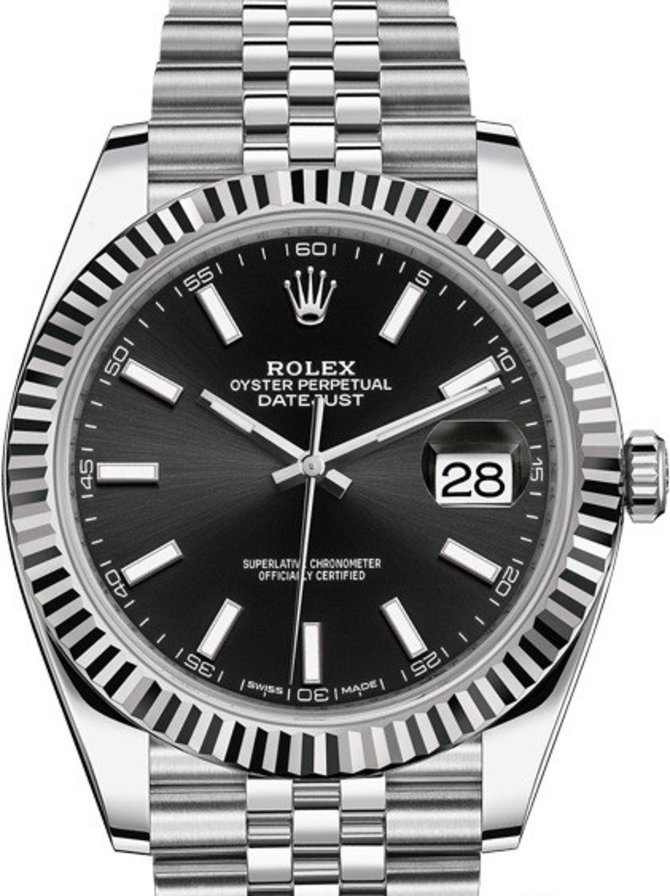 Строгий дизайн мужских швейцарских часов Rolex обеспечен черным циферблатом, рифленым безелем, комбинированным 41-миллиметровым корпусом из белого золота и нержавеющей стали, что комплектуется прочным браслетом, произведенным в той же комбинации. Циферблат служит для индикации часов, минут, секунд и даты; для защиты от повреждений производитель предусмотрел сапфировое стекло, что покрыто антибликовым многослойным составом. Для индикатора даты тоже есть одна особенность. Над ним установлена циклопная линза для увеличения показаний. Автоматический мануфактурный калибр 3235 со статусом хронометра, что подтверждает официальный сертификат швейцарского института хронометрии COSC.