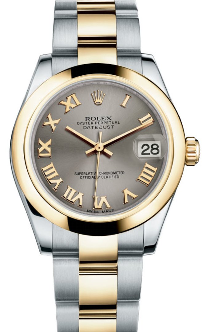 Эти женские современные часы диаметром 31 мм сочетают в своем облике великолепные сияющие оттенки благородных материалов. Они представляют собой воплощенный гимн страсти и обольщения, обладая при этом всеми качествами классической модели серии Datejust, знаковой модели Rolex, характеризующейся элегантностью, не зависящей от времени. Корпус Oyster 31 мм модели из материала белый Rolesor (сочетание стали 904L и 18-каратного белого золота) Название Rolesor было зарегистрировано в 1933 году и означает гармоничное сочетание в одних часах 18-каратного золота и нержавеющей стали. Первые опыты Rolex в использовании двух металлов разного цвета восходят к 1920-м годам, когда впервые появились часы Rolex с двухцветным биметаллическим корпусом: в основном это было сочетание желтого или розового золота с белым золотом или платиной. Появившаяся в 1945 году модель Oyster Perpetual Datejust уже через три года была представлена в исполнении Rolesor. Постепенно использование желтого, белого и розового золота в сочетании Rolesor распространилось на другие модели, включая часы профессионального назначения.