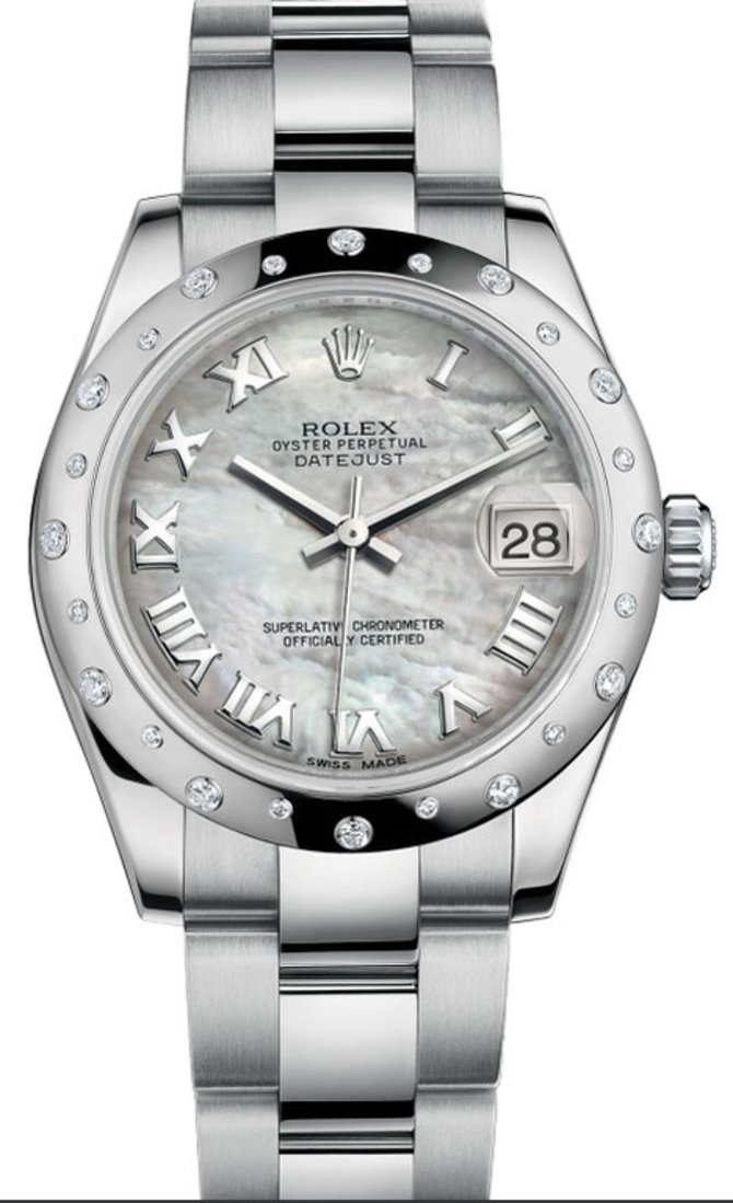 Часы марки Rolex давно стали символом богатства и успеха. О них знают все, даже те, кто не имеет никакого отношения к рынку эксклюзивных часов. Но самое удивительное то, что часы Rolex стали статусным аксессуаром почти сразу после создания компании. Возможно, это связано с тем, что компания, основанная немецким часовщиком Гансом Вильсдорфом, изначально взяла верный курс на стойкость к модным веяниям и предпочла свое собственное видение. Классический дизайн часов Rolex претерпел лишь незначительные изменения со времени появления первых моделей. Неизменность дизайна является особой гордостью бренда. Вместо бесконечной погони за изменчивой модой, компания Rolex занимается более важными вещами, например, постоянно усовершенствует часовой механизм. Одним из первых усовершенствований наручных часов стало создание герметичного корпуса, надежно защищенного от пыли и воды (модель Rolex Oyster). Успех марки также связан с умелой маркетинговой политикой. Ганс Вильсдорфа одним из первых осознал необходимость активной рекламы. Ведь, несмотря на качество продукции, продажи напрямую зависят от того, насколько много людей узнают о ней. А в качестве и надежности, выпускаемых его фирмой часов Ганс Вильсдорф был уверен стопроцентно. Для подтверждения исключительности и прочности часы подвергались невообразимым испытаниям. Начать с того, что те самые водонепроницаемые и герметичные часы Oyster выдержали многочасовое пребывание в воде, находясь на руке знаменитой пловчихи Мерседес Гляйтц, когда она переплывала Ла-Манш. Об этом написали все газеты мира, и часы приобрели небывалую популярность. После этого они неоднократно штурмовали горные вершины, опускались на морское дно вместе с исследователями глубин, преодолевали звуковой барьер в кабинах летчиков-испытателей и отправлялись к Полюсам в составе Арктических и Антарктических экспедиций, приобретя репутацию «неубиваемых» час. Циферблат часов Datejust 31mm Steel and White Gold серого жемчужного цвета, безель оснащен 24 белыми бриллиантами.