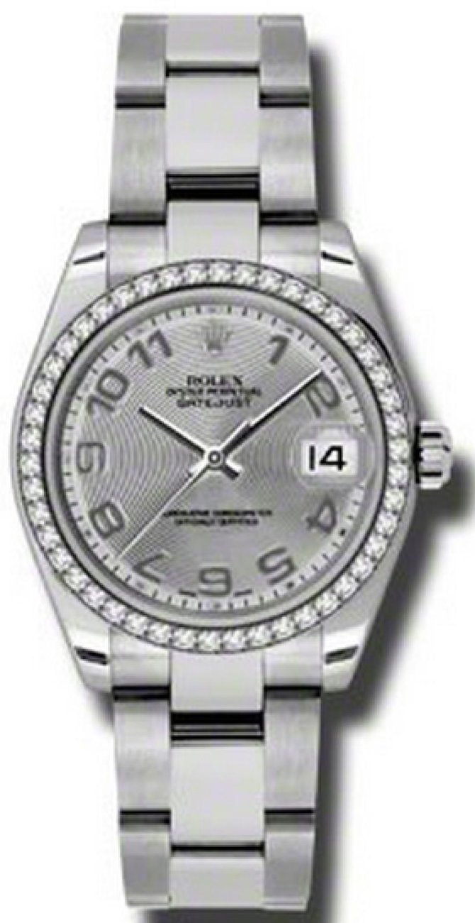 Модель часов Rolex Datejust 31mm Steel and White Gold Ref: 178384 scao привлекает своей изысканностью: безель сверкает 46 белыми бриллиантами.