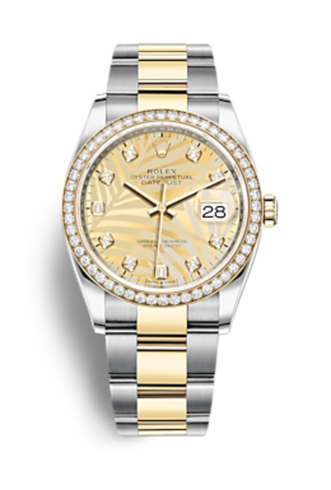 Швейцарский часовой бренд Rolex, который знают в каждом уголке нашей планеты, в 2022-ом году пополнил легендарную коллекцию Datejust, основанную в 1945 году, наручными часами Oystersteel and Yellow Gold Diamonds m126283rbr-0030 в комбинированном корпусе, диаметром 36 мм, из желтого 18-каратного золота и нержавеющей стали. Безель часов инкрустирован классическими бриллиантами. В корпусе установлен мануфактурный механический калибр Rolex 3235 с автоматическим подзаводом и запасом хода на 70 часов. Он обеспечивает индикацию текущего времени и даты на циферблате с часовой разметкой, выложенной белыми бриллиантами классической огранки. Индикатор даты оснащен циклопной линзой для увеличения показаний. Эта линза запатентована компанией Rolex. Защитное стекло выполнено из сапфирового кристалла и покрыто антибликовым покрытием. Браслет из золота и стали дополнен раскладной пряжкой. Водонепроницаемость корпуса - 100 метров.