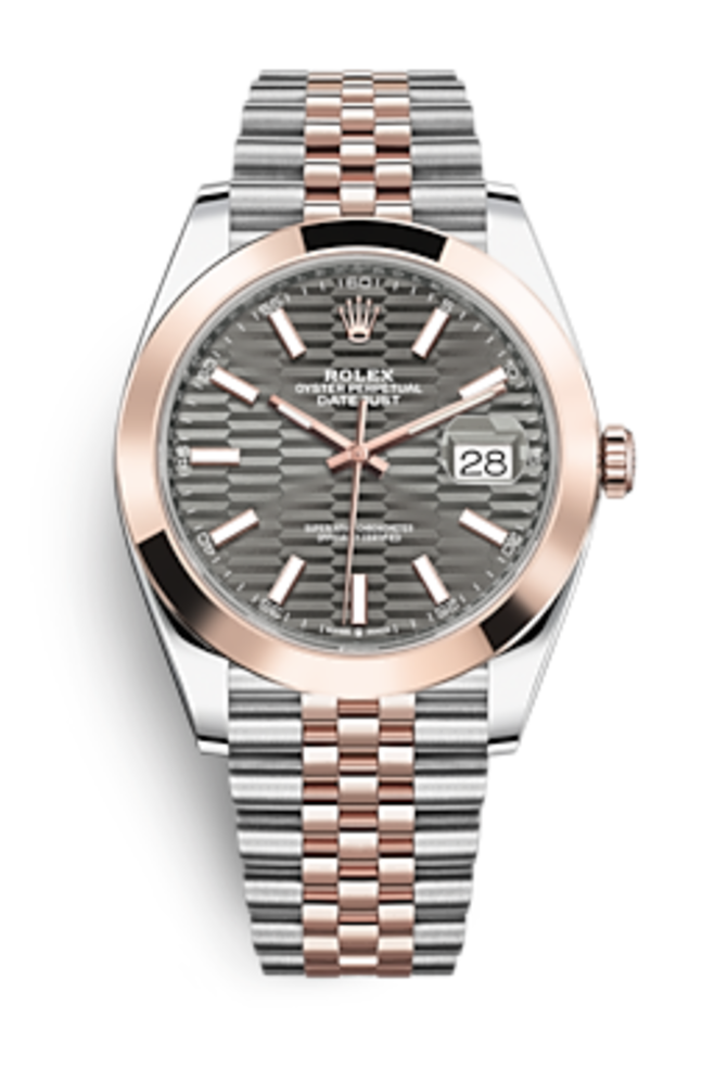 Мужские швейцарские часы Datejust 41 Oystersteel Everose gold m126301-0020 знаменитая мануфактура Rolex представила миру в 2022-ом году в круглом комбинированном корпусе из стали и розового 18-каратного золота, диаметром 41 мм. Индикация даты и времени осуществляется при участии установленного механизма Rolex 3235 с функцией автоподзавода и запасом хода на 55 часов. Герметичность корпуса - 100 метров. Полированный безель выполнен из розового золота. Часовая разметка со стрелками покрыты люминесцентным составом. Защитное стекло сделано из натурального сапфирового кристалла с антибликовым покрытием. Индикатор даты оснащен запатентованной брендом Rolex циклопной линзой, которая позволяет считывать показания данных с увеличивающим эффектом. Раскладная застежка Crownclasp дополняет комбинированный браслет.
