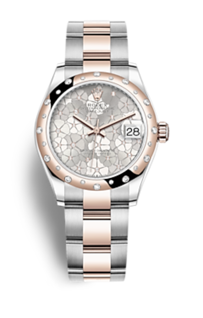 Швейцарские часы от компании Rolex, модель Datejust Oystersteel Everose gold and Diamonds m278341rbr-0031, выпущены в 2022-ом году в круглом корпусе из нержавеющей стали и розового 18-каратного золота, диаметром 31 мм. Герметичность корпуса рассчитана на погружение до 100 метров глубины. Безель и циферблат наручных часов инкрустированы классическими бриллиантами белого цвета. Сквозь защитное стекло из натурального сапфирового кристалла с противобликовым покрытием показываются данные текущего времени и даты. Индикатор даты накрыт фирменной и запатентованной Rolex циклопной линзой, которая позволяет считывать данные с увеличивающим эффектом. Раскладная застежка Crownclasp дополняет комбинированный браслет из золота и стали. Модель функционирует на базе мануфактурного механизма Rolex 2236 с автоподзаводом и запасом хода на 55 часов работы без подзавода.