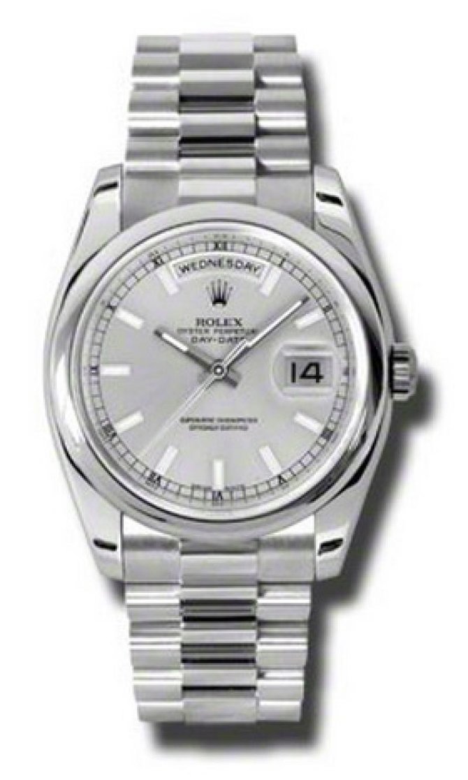 Часы Rolex уже давно ассоциируются с людьми, которые так или иначе определили ход истории. Несмотря на различия точек зрения, поля деятельности и достижений, есть одна вещь, объединяющая многих из этих удивительных людей: часы Day-Date. Модель часов Day-Date воплощает квинтэссенцию престижности и эксклюзивности. Благородный статус обязывает, поэтому корпус Oyster изготавливается исключительно из платины 950-й пробы или из 18-каратного золота. Безель может быть рифленым, гладким или украшенным драгоценными камнями, а богатый выбор роскошных циферблатов различных цветов и утонченной текстуры превращает часы Day-Date в неподвластный времени символ совершенства. С момента своего появления на свет в 1956 году часы Day-Date держат первенство. Они стали первыми часами, показывающими полное название дней недели. В этой уникальной модели, которую предпочитают многие мировые лидеры, индикация дней недели осуществляется в специальном окошке на многих языках.