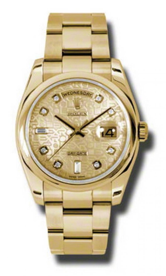 Модель Day-Date поистине эксклюзивна. Благородный статус обязывает, и корпус Oyster, изготавливается исключительно из платины 950-й пробы или из 18-каратного золота. Безель может быть рифленым, гладким или украшенным драгоценными камнями, а богатый выбор роскошных циферблатов различных цветов и утонченной текстуры полностью отвечает характеру, вкусам и критериям своего обладателя. Они стали первыми часами, показывающими полное название дней недели. В этой уникальной модели, которую предпочитают мировые лидеры, индикация дней недели в дугообразном окошке осуществляется на многих языках. Дисковый механизм календаря дат и дней недели в полной мере отражает изобретательность своих создателей. Смена дня недели и даты происходит ровно в полночь и практически мгновенно, в соответствии с безупречными стандартами качества Rolex. Часы Rolex уже давно ассоциируются с людьми, которые так или иначе определили ход истории. Несмотря на различия точек зрения, жизненного пути и достижений, есть одна вещь, объединяющая многих из этих удивительных людей: часы Day-Date