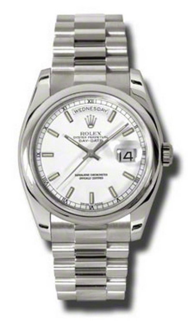 Другой важный элемент водонепроницаемой структуры Oyster – заводная головка, оснащенная запатентованной системой двойной герметизации Twinlock и плотно привинчивамая к корпусу. Сапфировое стекло плотно прилегает к безелю. Корпус Oyster наилучшим образом защищает высокоточный механизм часов Rolex от воды, пыли, давления и механических воздействий. В модели Day-Date установлен калибр 3156 с автоматическим подзаводом, полностью разработанный и изготовленный мастерами Rolex. Помимо дискового механизма календаря дат и дней недели, механизм 3156 оснащен спиралью Parachrom и эффективной противоударной системой Paraflex, разработанной компанией Rolex и обеспечивающей более надежную защиту от ударов и сотрясений в экстремальных условиях.