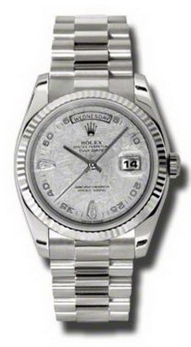 В модели Day-Date установлен калибр 3156 с автоматическим подзаводом, полностью разработанный и изготовленный мастерами Rolex. Помимо дискового механизма календаря дат и дней недели, механизм 3156 оснащен спиралью Parachrom и эффективной противоударной системой Paraflex, разработанной компанией Rolex и обеспечивающей более надежную защиту от ударов и сотрясений в экстремальных условиях.