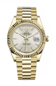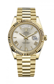 Модель швейцарских часов от бренда Rolex - Day-Date 40 mm Yellow Gold 228348RBR-0004 представлена производителем в корпусе из желтого золота, размером 40 мм. Механизм, установленный в данной модели, отличается статусом хронометра и запасом хода на 48 часов. На черном циферблате показываются данные времени, дней недели и даты. Часовые метки со стрелками из золота были покрыты люминесцентным составом для считывания показаний в темноте. Часы укомплектованы золотым браслетом с раскладной пряжкой. Безель инкрустирован бриллиантами классической огранки. Циклопная линза установлена на индикаторе даты для увеличения показаний. Водонепроницаемость корпуса - 100 метров.