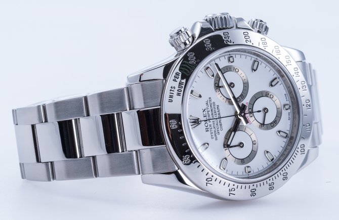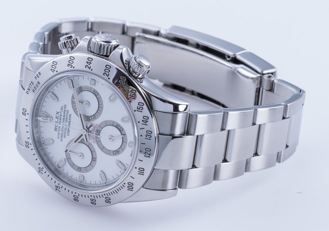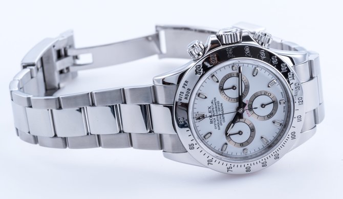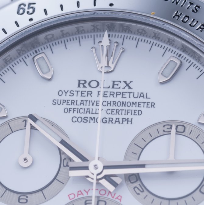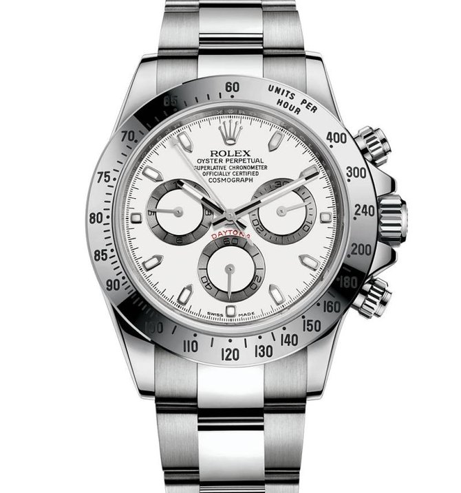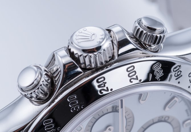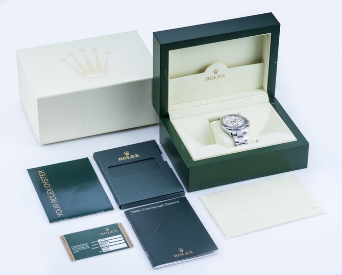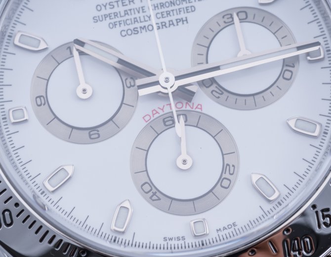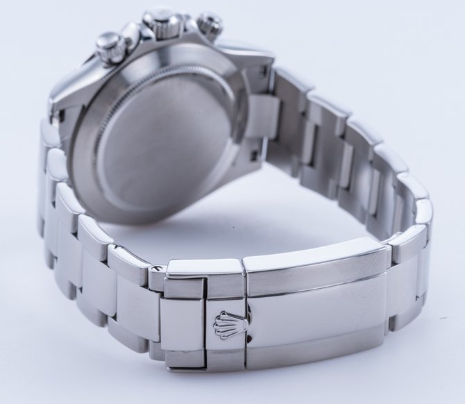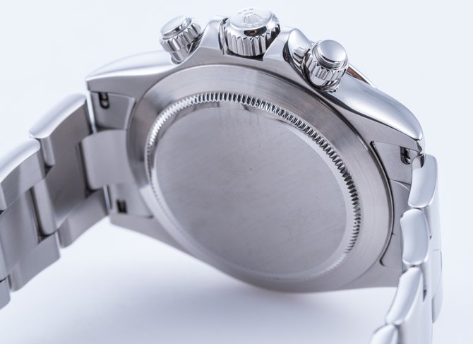 В модели Cosmograph Daytona установлен калибр 4130 с автоматическим подзаводом, полностью разработанный и изготовленный мастерами Rolex. Механизм 4130 оснащен спиралью Parachrom, обеспечивающей более надежную защиту от сотрясений и температурных изменений. Выгравированные на корпусе часов Rolex слова "Superlative Chronometer Officially Certified" означают, что механизм данных часов успешно прошел 15-дневное тестирование Официального швейцарского института хронометрии (COSC), являющегося независимой некоммерческой ассоциацией. Корпус 40 мм, браслет из стали. Запас хода часового механизма составляет 72 часа.