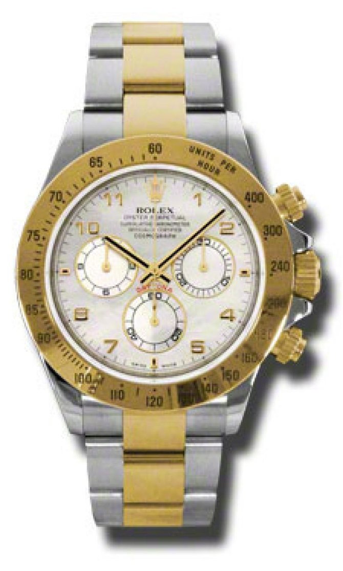 Часы Cosmograph Daytona 116523 ma в версии из желтого 18-ти каратного золота и нержавеющей стали, с серебристым циферблатом, прочным браслетом с надежной застежкой Oysterlock – прекрасно смотрятся как на гоночной трассе, так и на торжественном вечере.