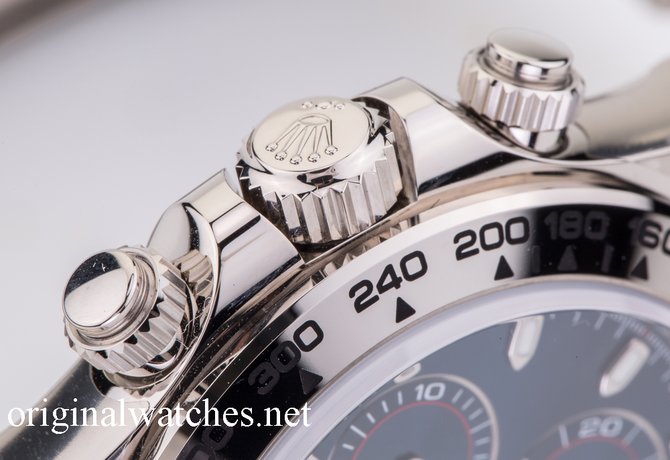 В корпусе из белого 18-каратного золота часовая мануфактура Rolex представляет новую модель 2016 года, вошедшую в легендарную коллекцию "Daytona". Корпус данных часов хранит внутри себя мануфактурный швейцарский автоматический механизм с таким функциональным набором: хронограф, часы, минуты, секунды, тахиметр. Стоит отметить, что механизм, установленный в этих часах, отмечен официальным сертификатом хронометра COSC. Также к особенностям этих швейцарских часов можно отнести 100-метровую герметичность корпуса и 72-часовой запас хода механизма. Браслет из белого золота с раскладной застежкой дополняет представленные часы.