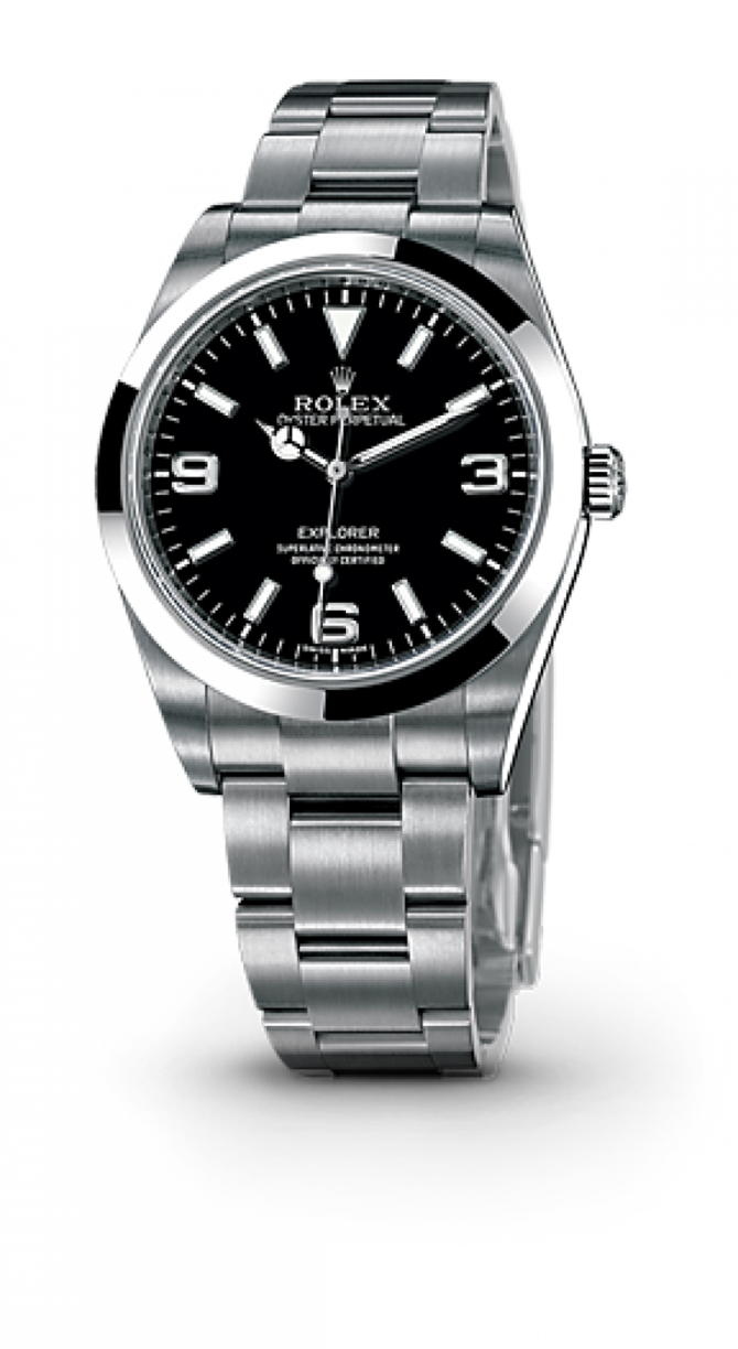 Модель Oyster Perpetual Explorer воплощает в себе дух приключений и настойчивость исследователя. Вдохновленная многолетним опытом Rolex в Гималаях, модель Explorer была выпущена в честь первого успешного восхождения на Эверест, которое в 1953 году осуществила экспедиция, оснащенная хронометрами Rolex Oyster Perpetual. Легендарная модель, созданная для альпинистских экспедиций в экстремальных условиях, была выпущена в том же году. Сохраняя верность принципам компании Rolex и яркую индивидуальность, модель Explorer постоянно развивается, неуклонно впитывая всевозможные технические новшества. Новая версия, выпущенная в 2010 году, повторяет сдержанные, мощные и элегантные линии часов 1953 года. Она выпускается в слегка увеличенном до 39 мм корпусе с гладким безелем и функциональным дизайном. Часовые отметки и стрелки контрастируют с элегантным циферблатом. Новой модели Oyster Perpetual Explorer свойственна свежесть сдержанных четких линий, которые сделали из нее легенду. Гладкий безель из стали 904L отличается прочностью и элегантностью, унаследованными от легендарных часов Explorer.Изготовленный из цельного блока нержавеющей стали 904L, которая обладает повышенной устойчивостью к коррозии, невероятно прочный корпус Oyster надежно защищает находящийся в нем высокоточный механизм. Задняя крышка и заводная головка, привинчиваемые к корпусу, обеспечивают водонепроницаемость до глубины 100 метров, а стекло изготовлено из синтетического сапфира, устойчивого к появлению царапин. Индикация Chromalight с помощью люминесцентного вещества длительного свечения обеспечивает отличную читаемость показаний в самых экстремальных условиях. Компания Rolex производит часовые корпуса из нержавеющей стали 904L. Сталь 904L используется в сфере высоких технологий, космической и химической промышленности, требующих максимальной стойкости к коррозии. Суперсплав 904L отличается иск