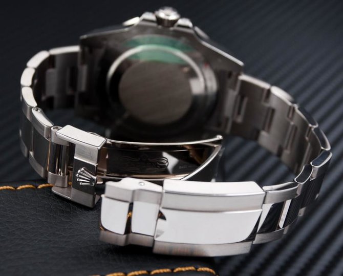 В дополнение к обычным стрелкам, часовой, минутной и секундной, часы GMT-Master II оснащены указательной стрелкой с наконечником, которая совершает полный оборот за 24 часа, а также вращающимся в двух направлениях безелем с 24-часовой градуированной шкалой.