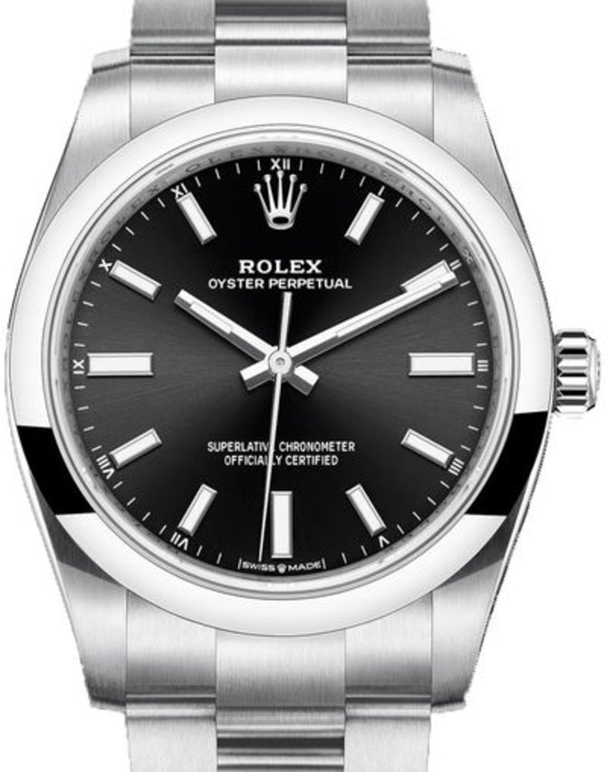 Швейцарская часовая мануфактура Rolex презентует наручные часы классического типа Oyster Perpetual 34mm Ref. 124200-0002 в круглом корпусе круглой формы из нержавеющей стали, диаметром 34 мм. Часы функционирует на базе мануфактурного калибра от Rolex - 2232, который отличается запасом хода на 55 часов работы. Часовой циферблат, который защищен стеклом из сапфирового кристалла, служит для индикации часов, минут, секунд. На стрелки и часовую разметку нанесено люминесцентное покрытие. В комплекте поставляется браслет из нержавеющей стали с раскладной застежкой. Корпус имеет водонепроницаемость до 100 метров.
