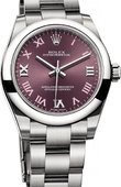 Сатинированный циферблат часов Rolex Oyster Perpetual Oyster Perpetual 31mm Steel 177200-0018 отображает данные текущего времени - часов, минут, секунд. Метки выполнены из стали и золота, а стрелки - из стали. Стекло на лицеовй стороне часов изготовлено из натурального сапфирового кристалла с нанесением на него противобликовых свойств. Швейцарская мануфактура Rolex по производству наручных часов люкс-класса еще с 1905 года выпускает механические модели с механизмами, обладающими высокой хронометрической точностью, что подтверждено наличием у часов сертификата хронометра от швейцарского института хронометрии СOSC. 26-миллиметровый корпус данной модели швейцарских часов наделен возможностью противостоять воде до 100 метров глубины. Запас хода механизма на уровне 2 суток.